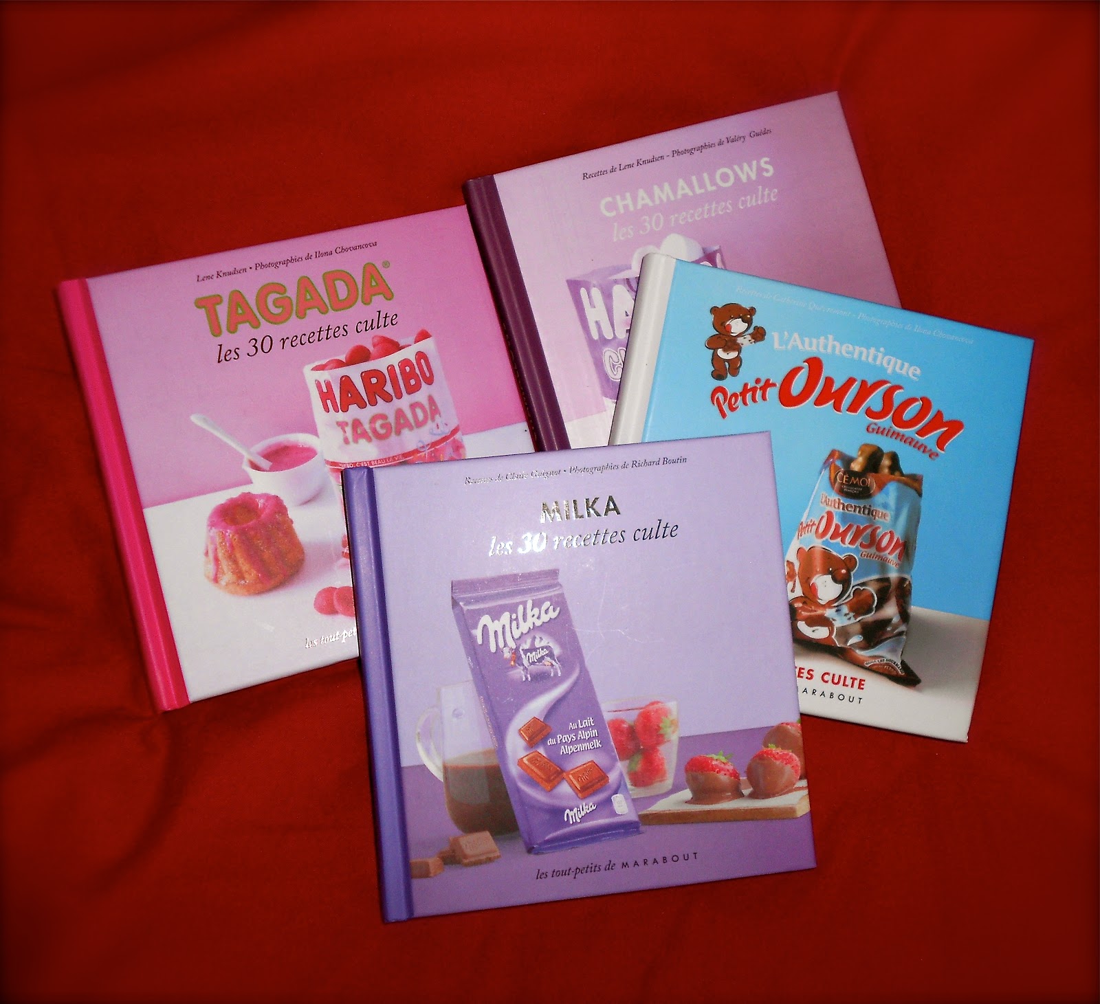 – Lot 1 : quatre petits livres des Editions Marabout : les 30 recettes cultes Fraises Tagada, Petit Ourson Guimauve, Milka et Chamallow