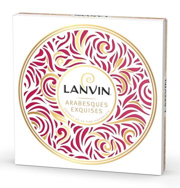 Enfin, Lanvin a fait les choses bien, puisque les coffrets assortiments “prestige” et “chocolatiers” ont subi un relooking complet et franchement, ça vaut la peine de s’y attarder. Ma préférence va au coffret “Arabesques exquises” dont les arabesques sont découpées pour un rendu léger et “créatif”. Evidemment, il vaut aussi le détour avec son contenu.