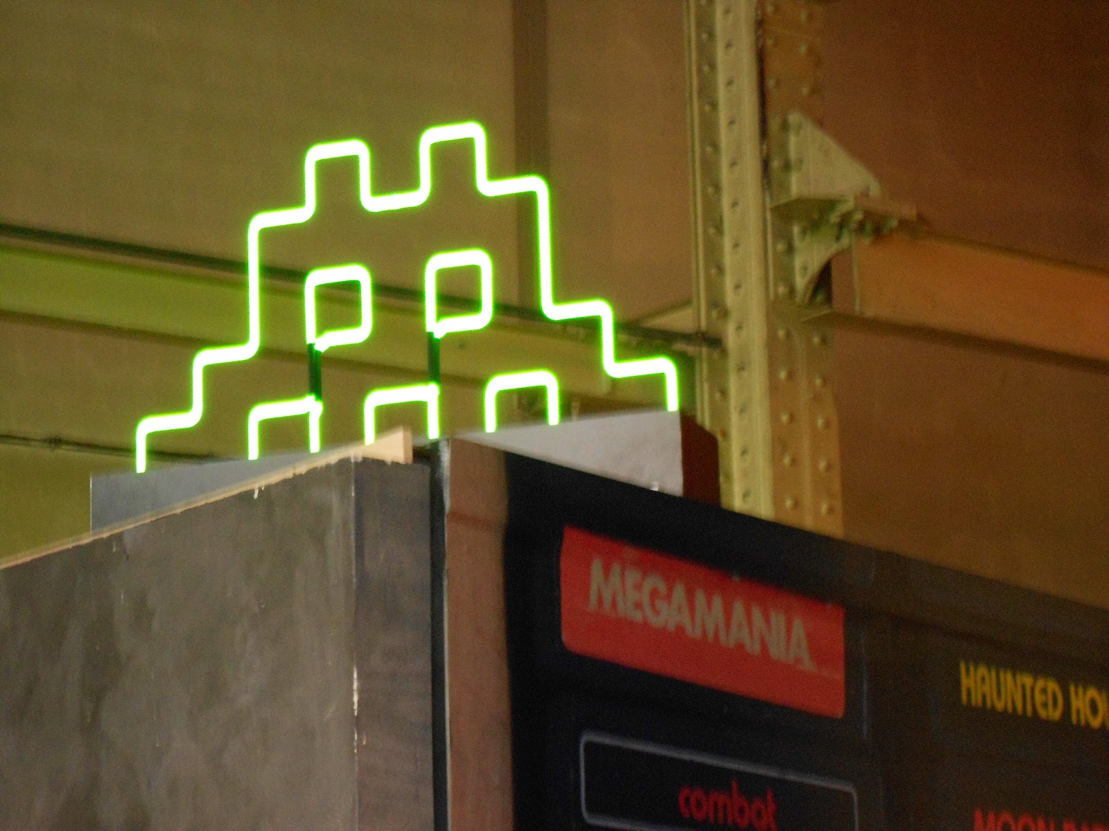 “Depuis plus de 10 ans, un artiste parisien fait revivre les “space invaders”, ces créatures échappées du jeu vidéo éponyme de la fin des années 70’ qui préfigurait l’avènement du pixel et de la technologie numérique. Sous le pseudonyme d’INVADER, l’artiste a appliqué le concept du jeu à notre réalité urbaine et a donné une existence sensible au pixel en permettant aux aliens du jeu de s’échapper de l’écran pour se matérialiser sous forme de carreaux de mosaïque sur les murs des grandes métropoles du monde entier. Paris, Londres, New-York, Tokyo mais aussi Mombasa ou encore Katmandou, on compte aujourd’hui plus de 40 villes “envahies” dans le monde.“